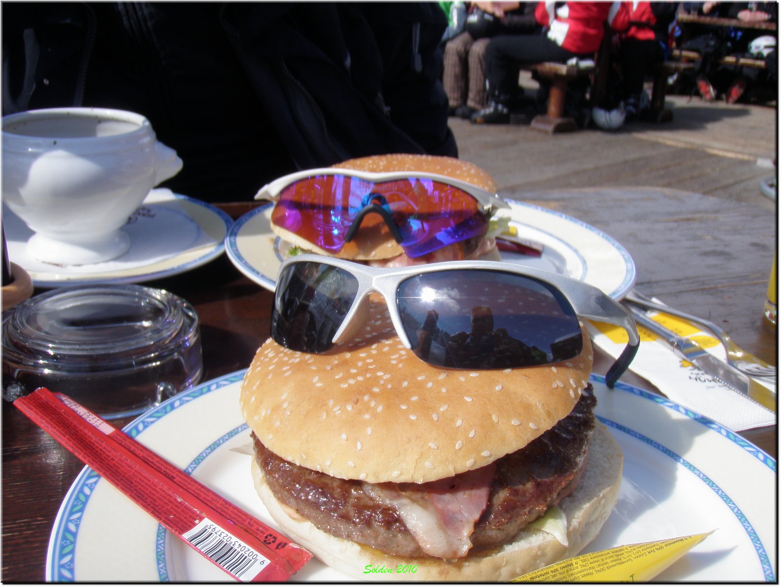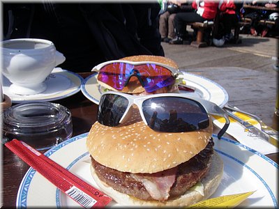 Te koud voor de Gletsjer. Dan maar een maxi-hamburger eten :) Yummie!