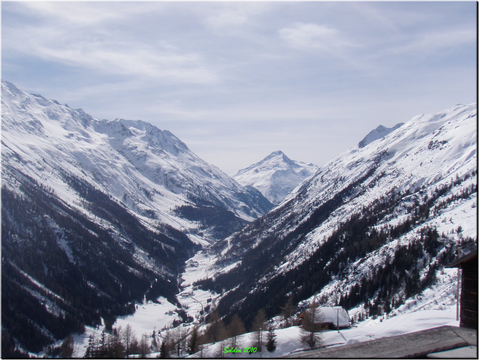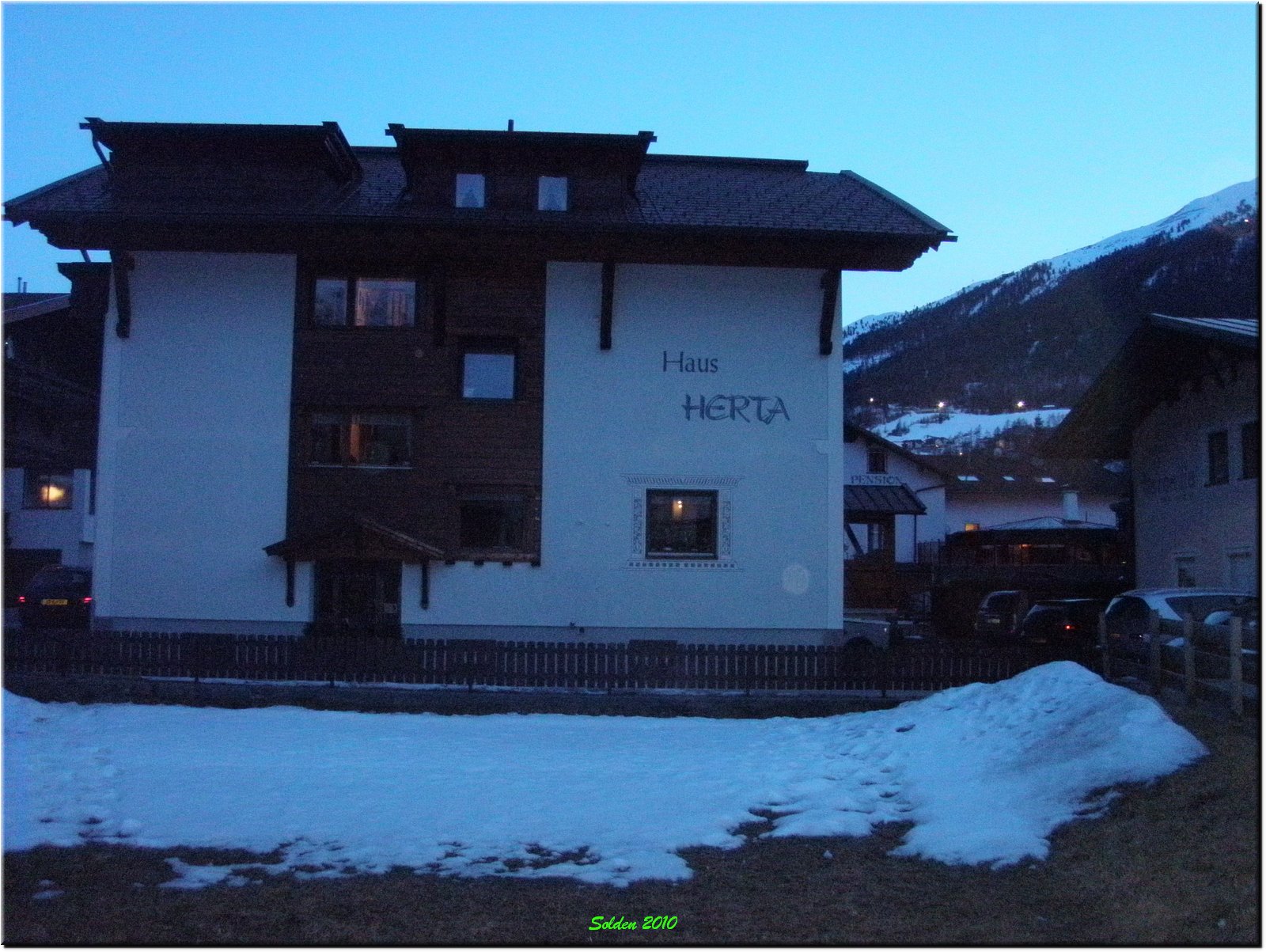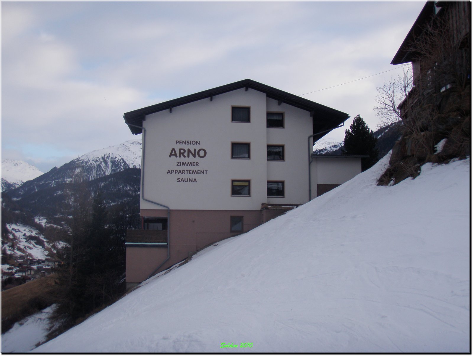 Ons pensionnetje. Ondanks de hoogte (Solden ligt op 1377m) toch vrij groen.