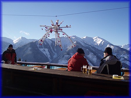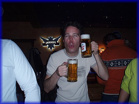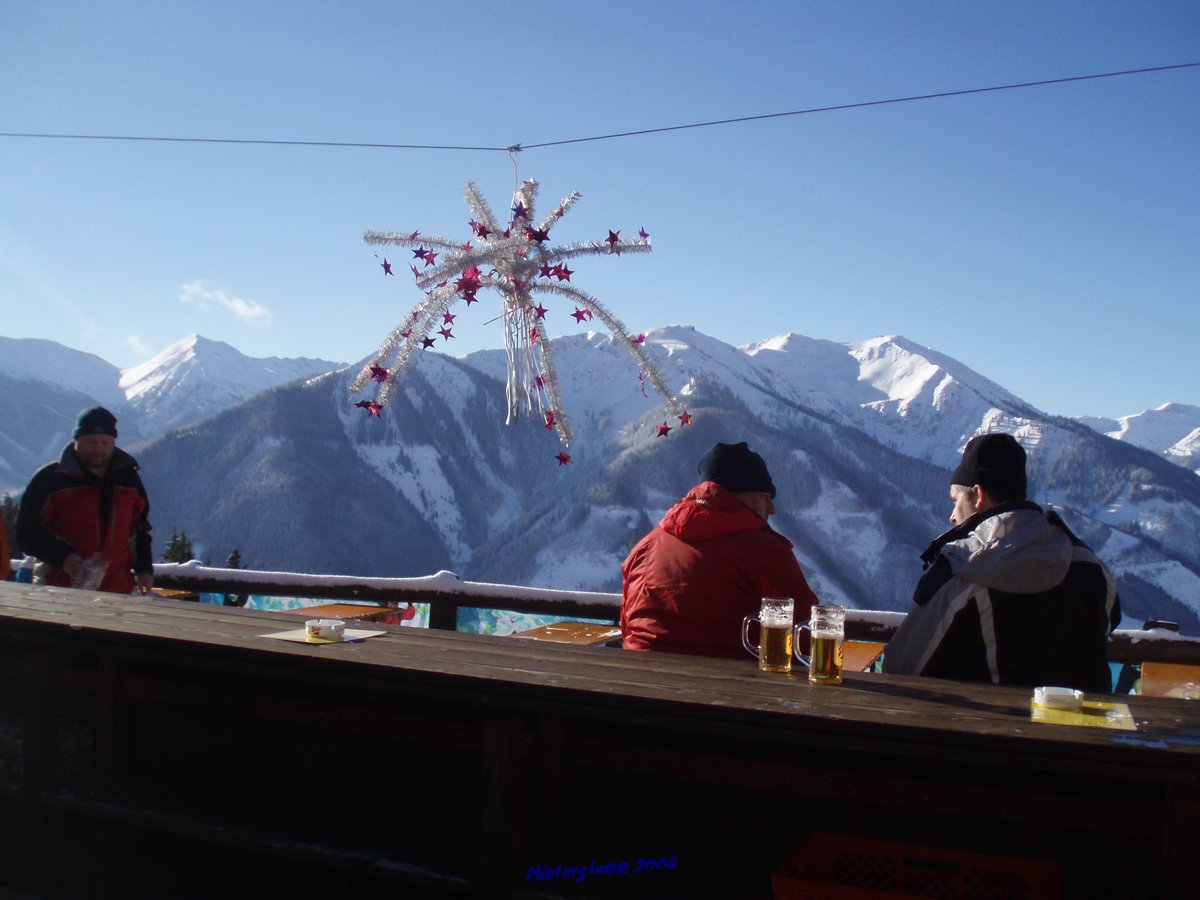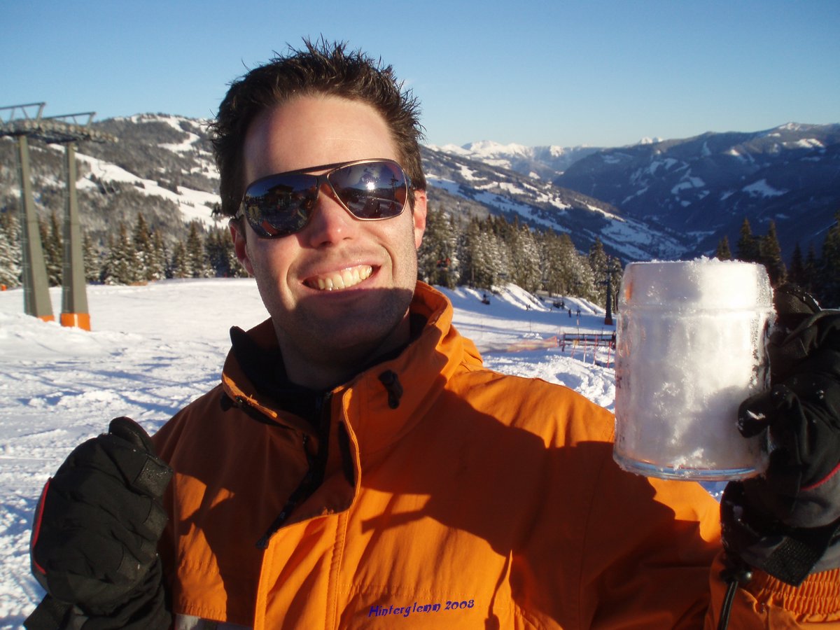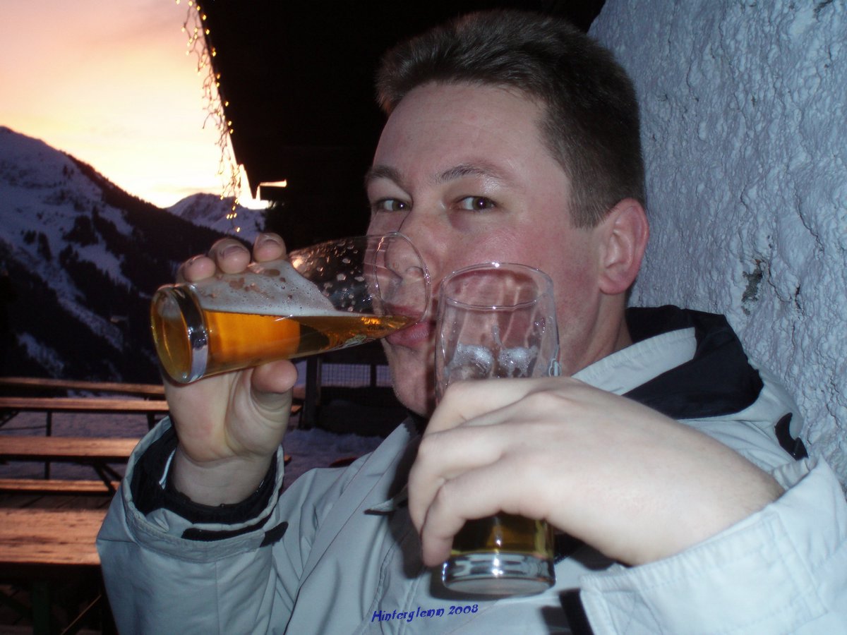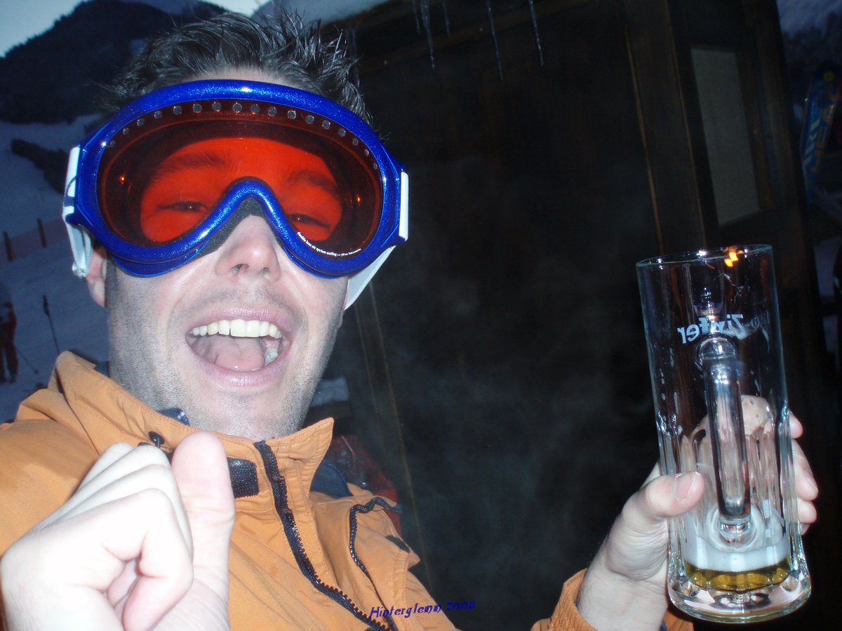 Eerste biertje in Saalbach. Dat er nog maar veel mogen volgen