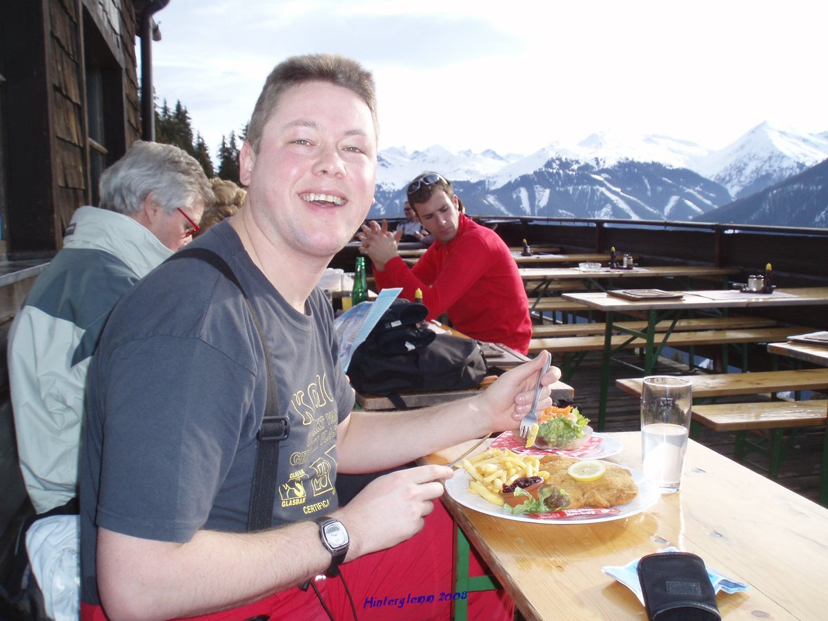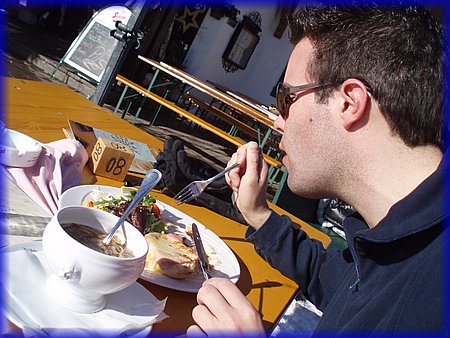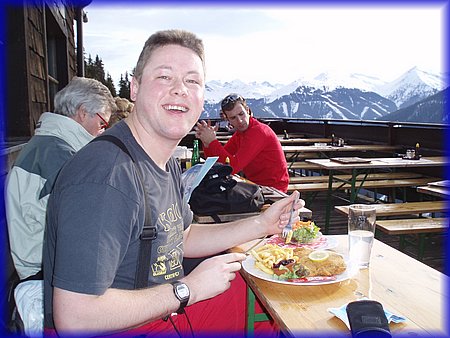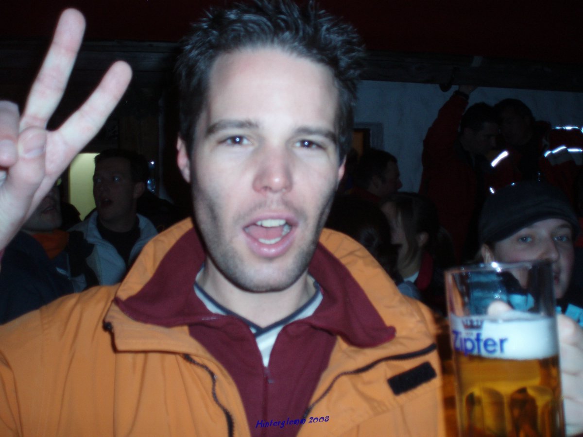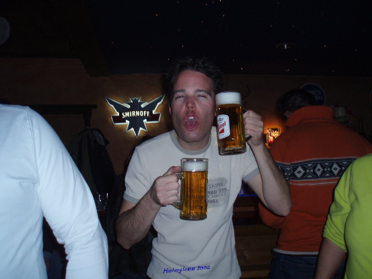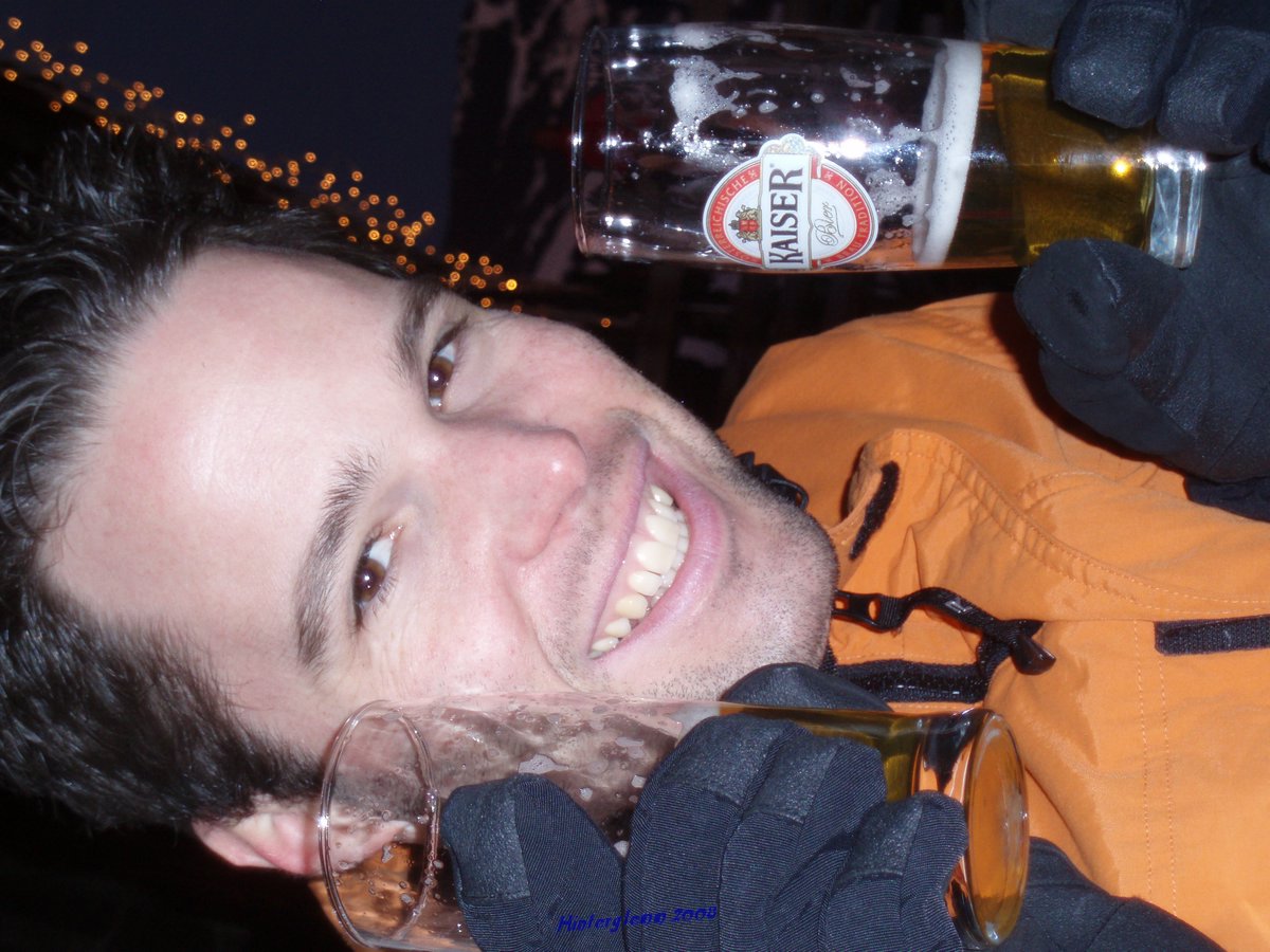 Eerste biertje in Saalbach. Dat er nog maar veel mogen volgen