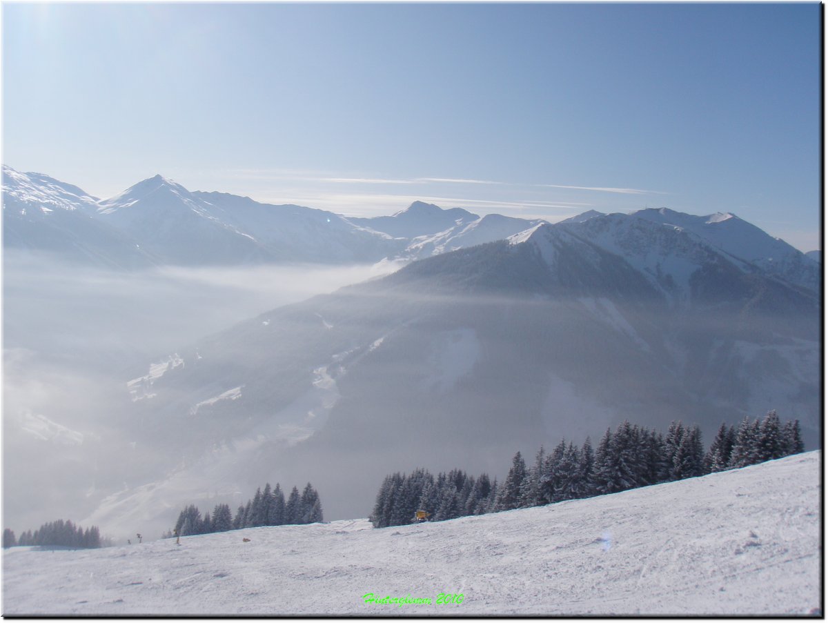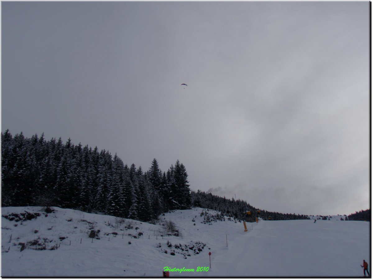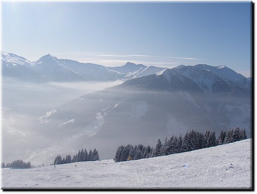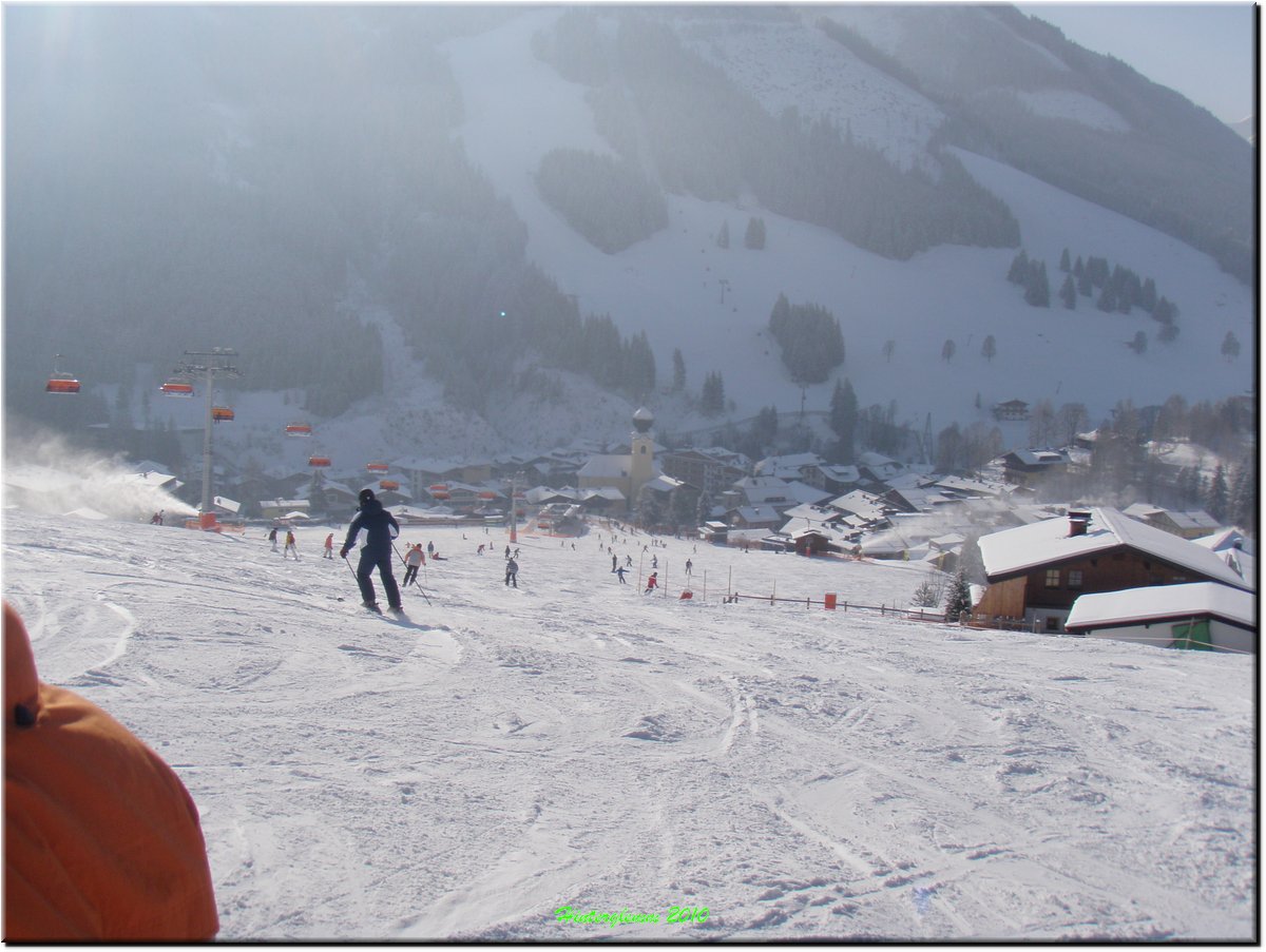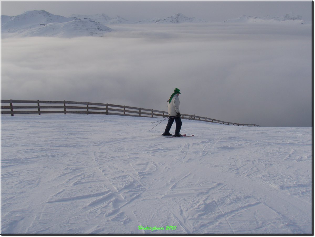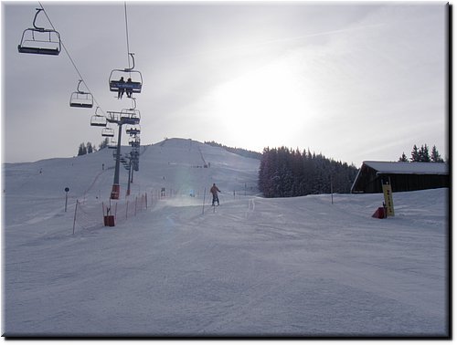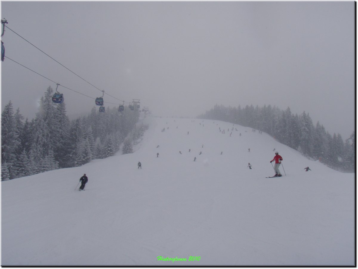 Het was vrij zonnig maar, mede door de vele sneeuwkanonnen, hing er wat nevel.