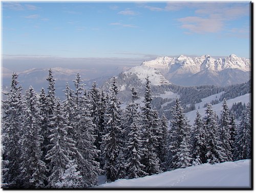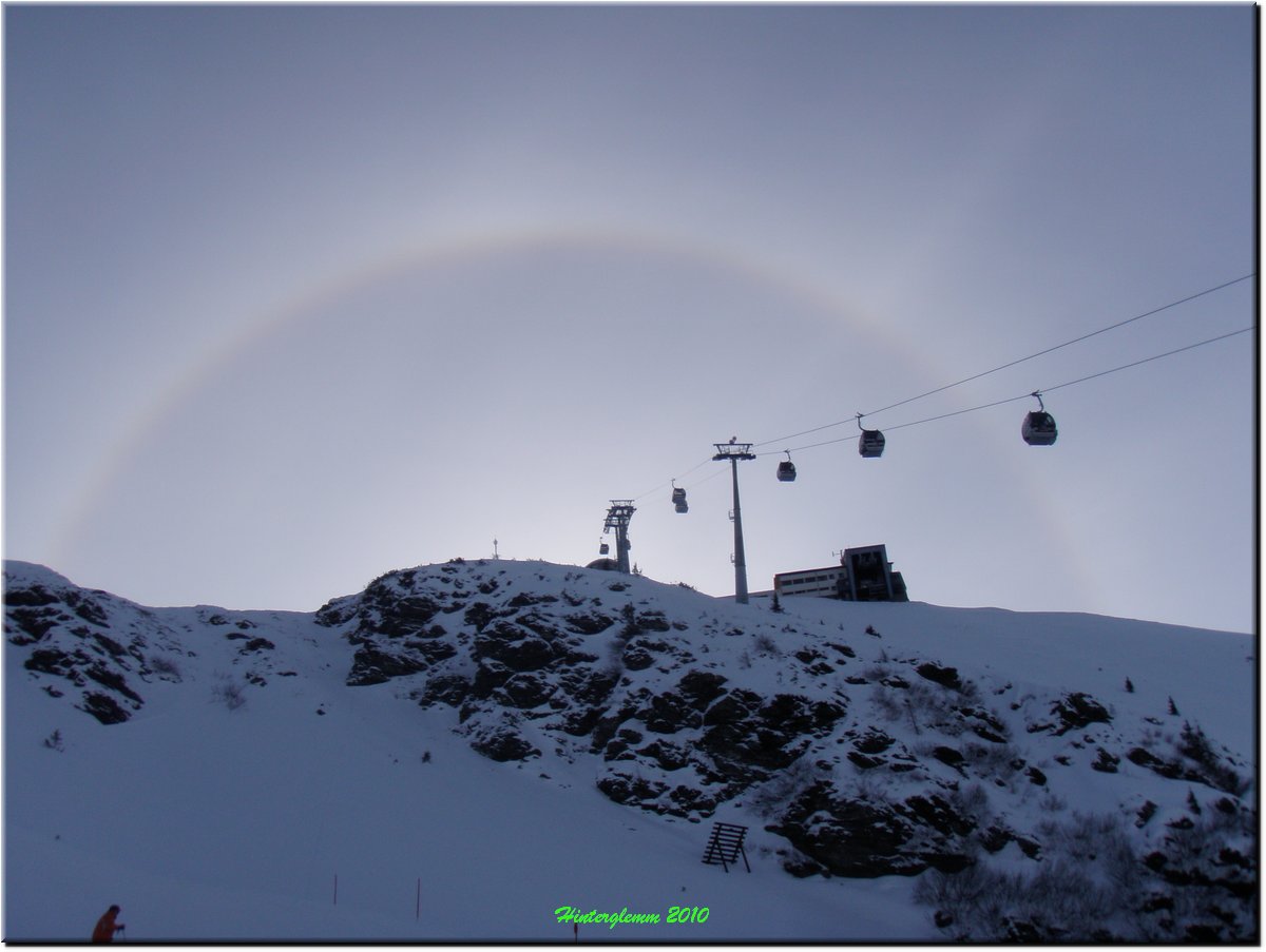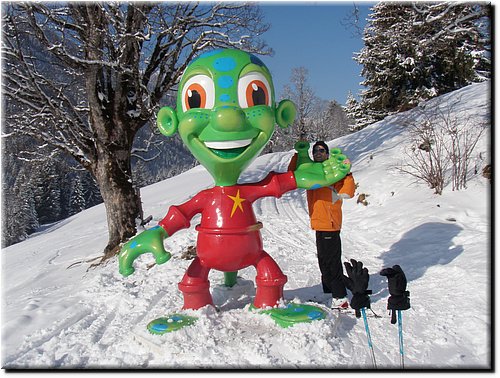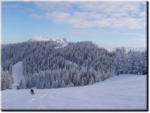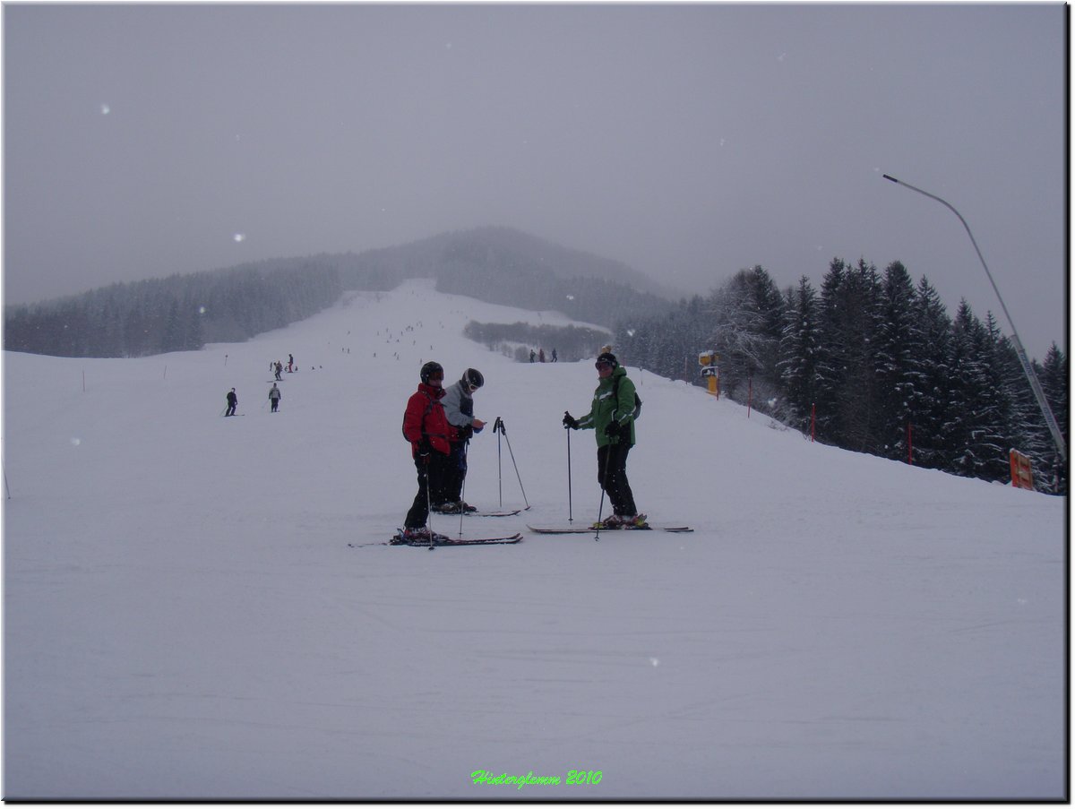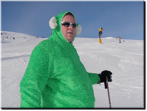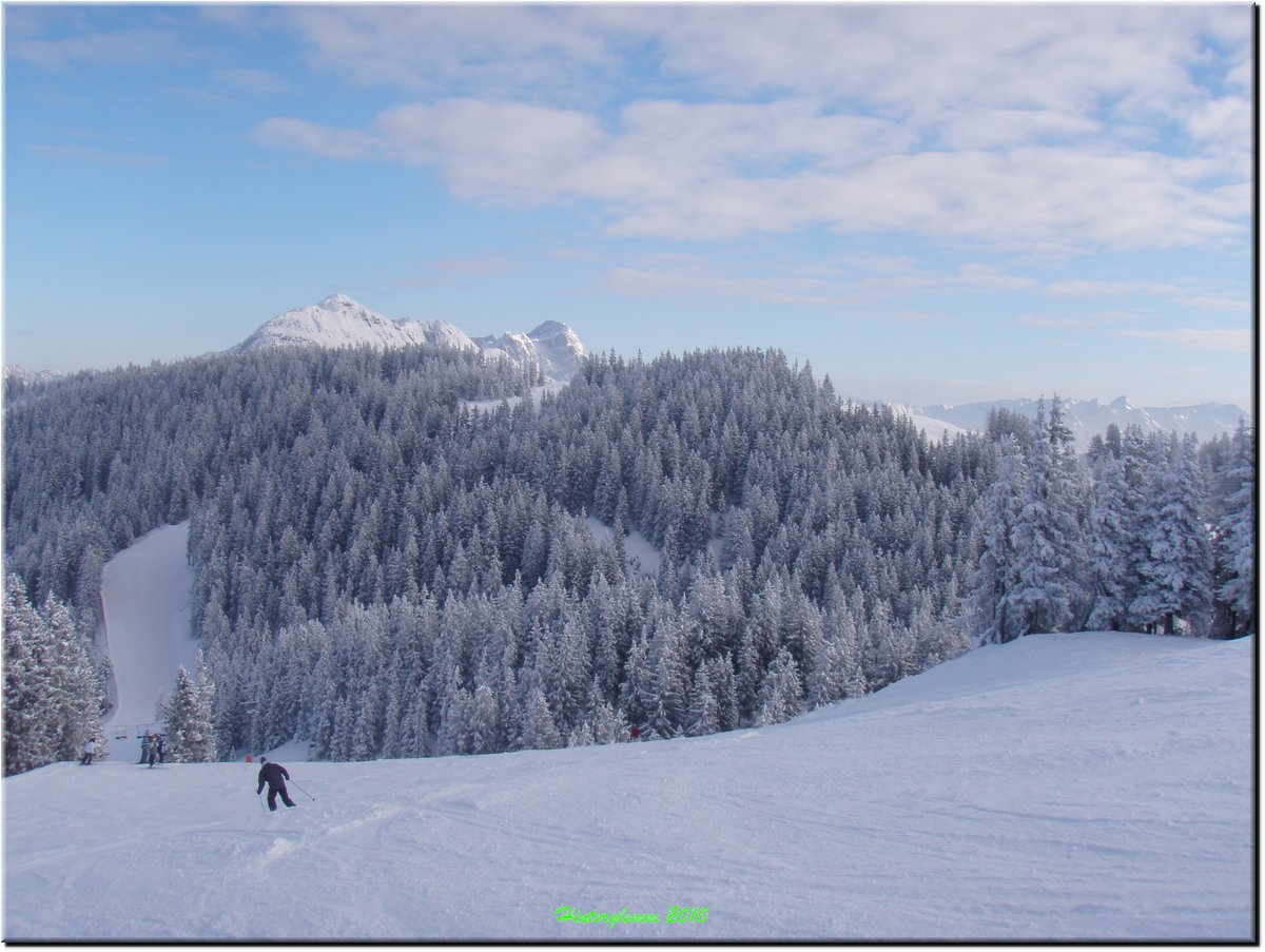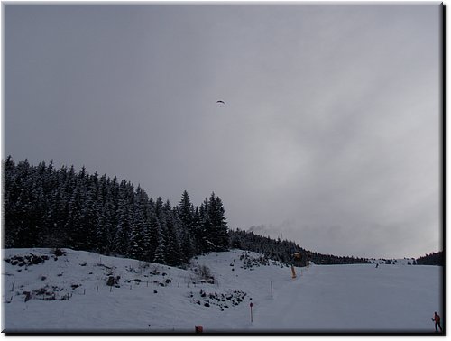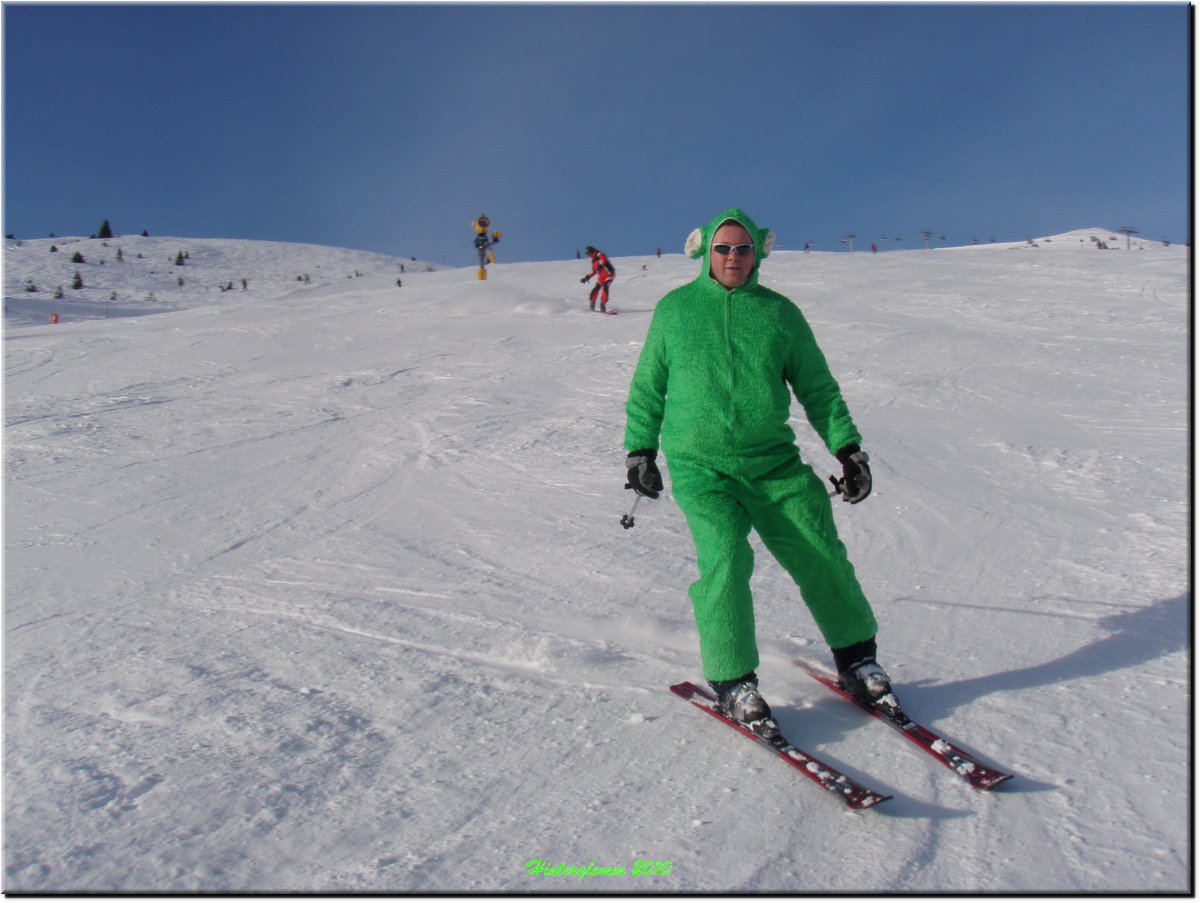 Het was vrij zonnig maar, mede door de vele sneeuwkanonnen, hing er wat nevel.