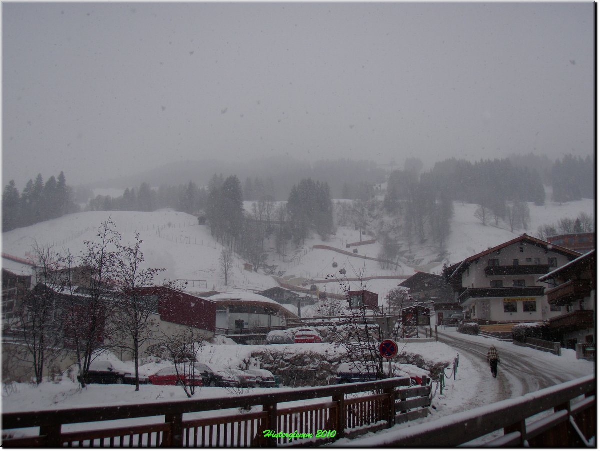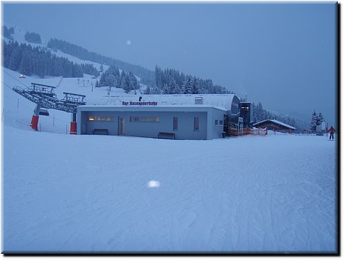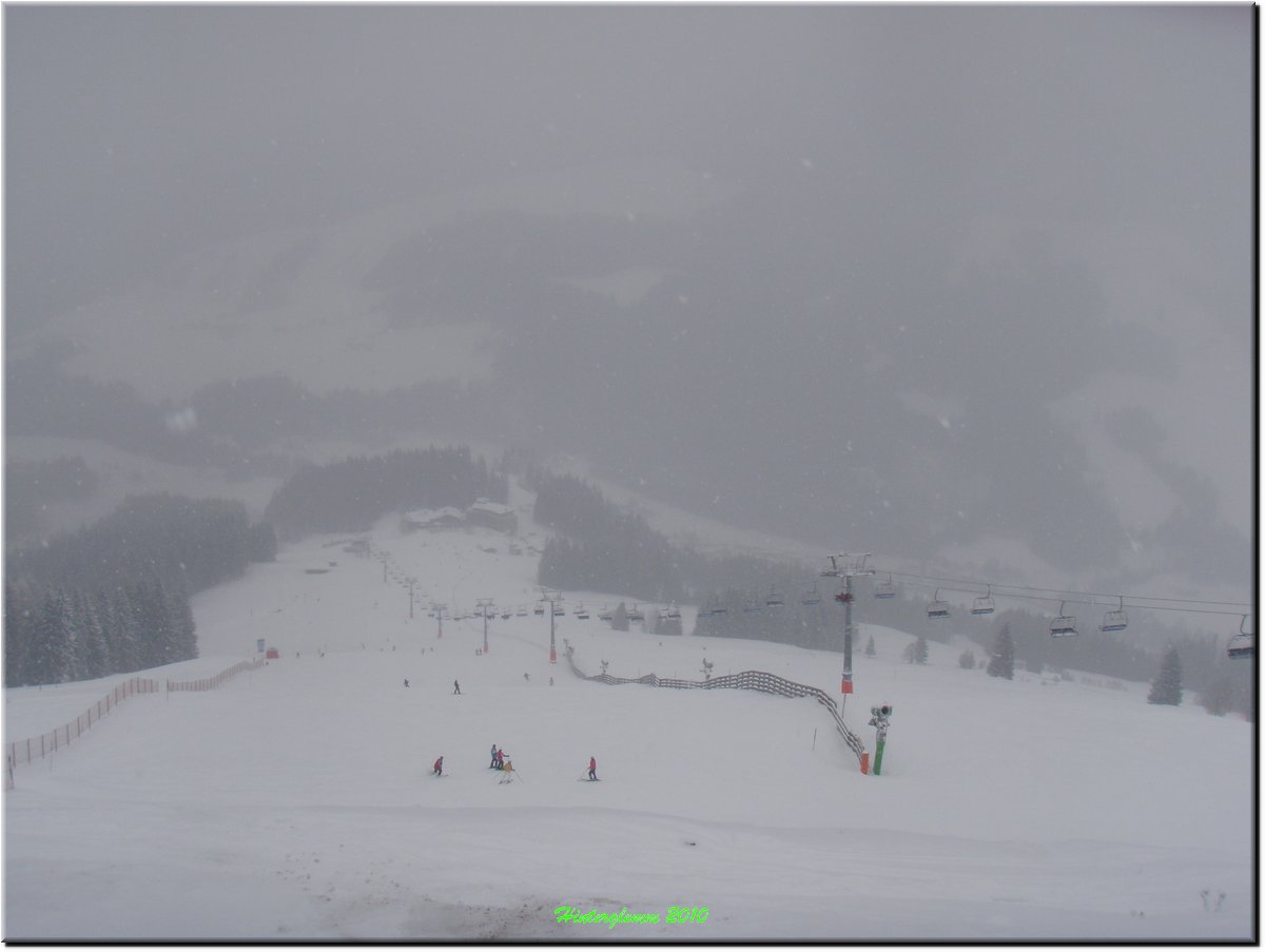 Het sneeuwde de hele dag, maar t zicht was goed. De nieuwe Almbahn in Leogang.