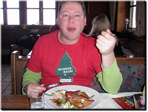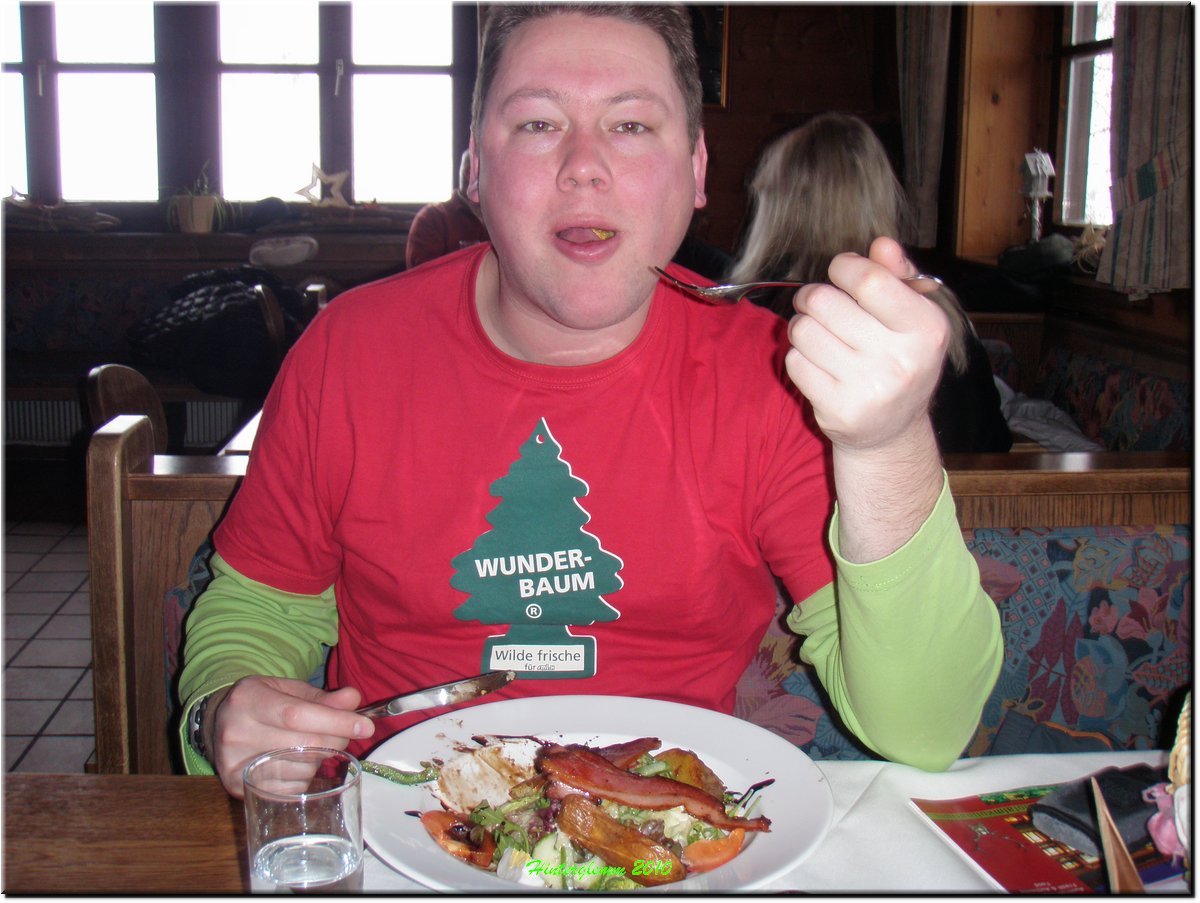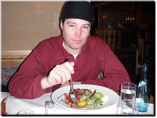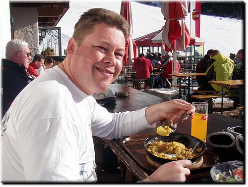 Dinsdagavond deden we rustig aan. Alleen tot het eten Apres-skieeen. Na het eten even een