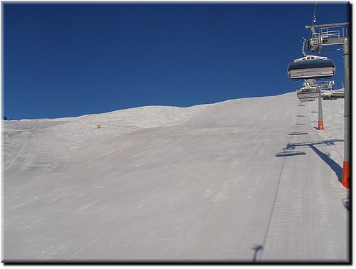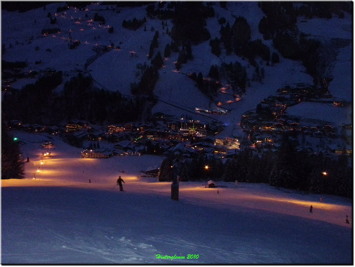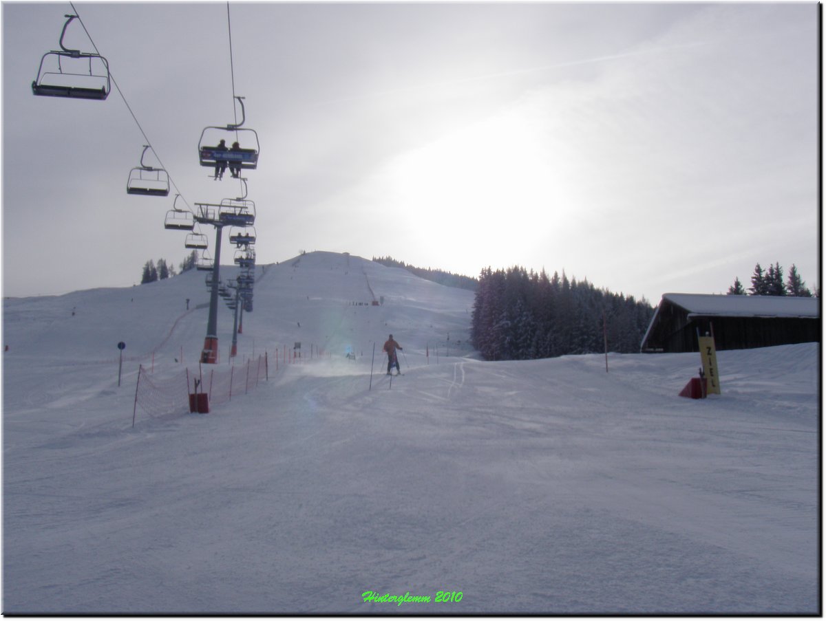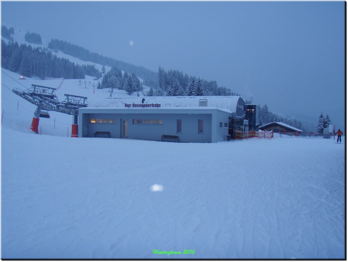 De nieuwe 8 persoons stoeltjeslift in Hinterglemm. Avondpiste vanaf de Geitenstal.