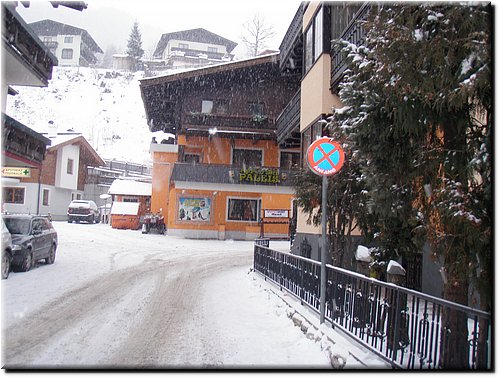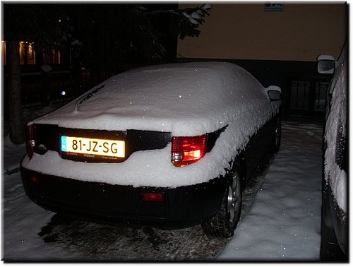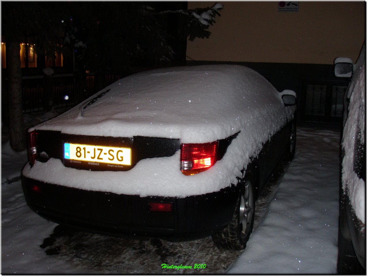 En daar is de witte Celica.                    Het Apres-ski Paleis is nog dicht.