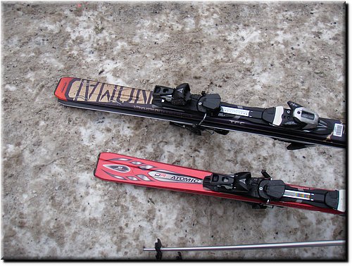 Dit waren onze online bestelde ski's. Nette ski's voor de budgetprijs die we betaald hebben.
