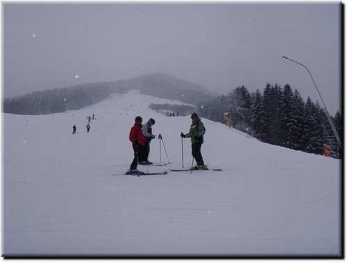 De volgende ochtend sneeuwde het. Dit was ook wel nodig op sommige pistes.